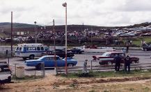 | This was taken in June 1977. I am in the Camaro in the right lane. Tom Haggin was the promoter then and he ran a bracket points series usually on Sundays. I attended the first Div. 7 bracket finals for Team Carlsbad. Also ran in 78 before moving to Georgia where I reside today. --John S. |