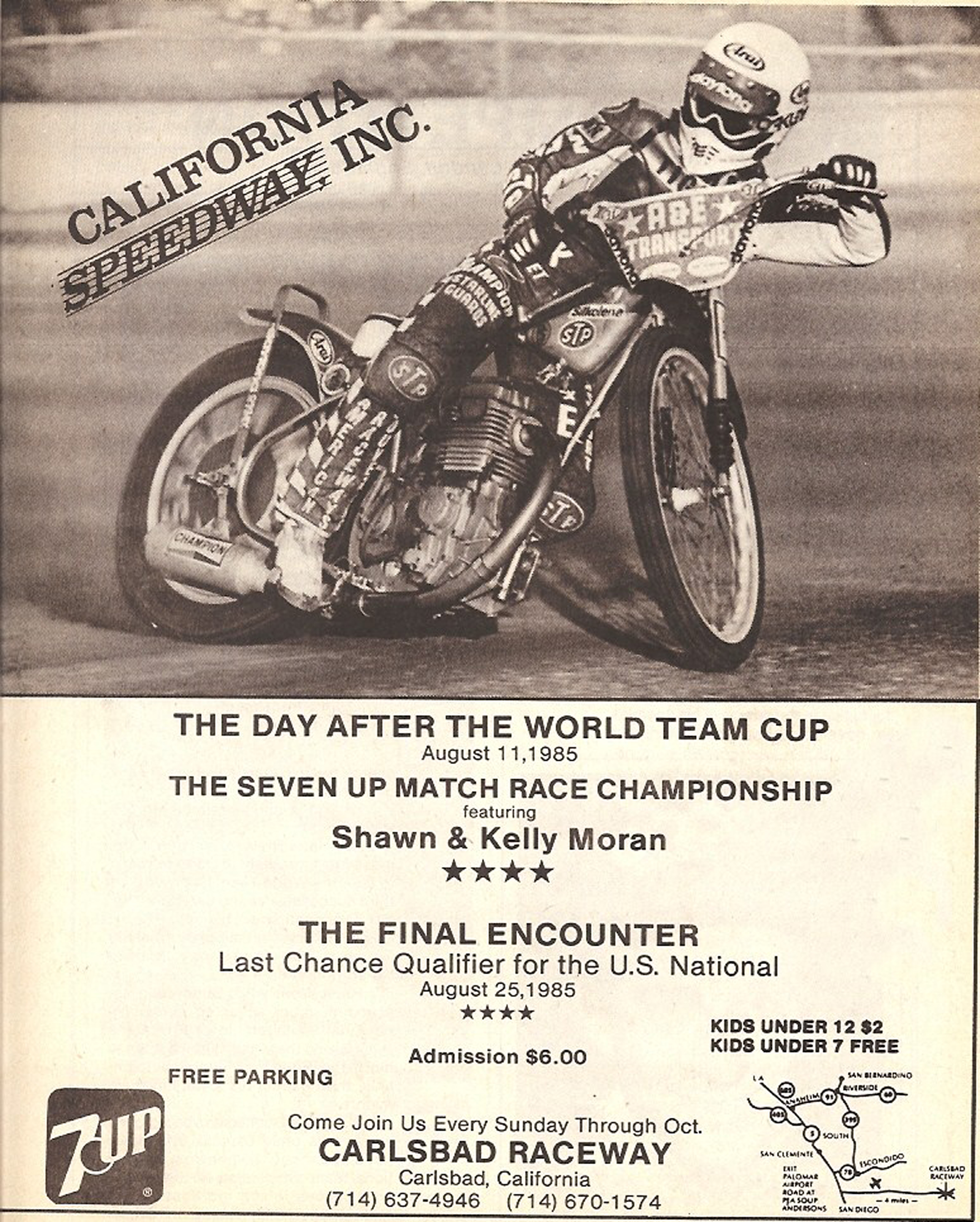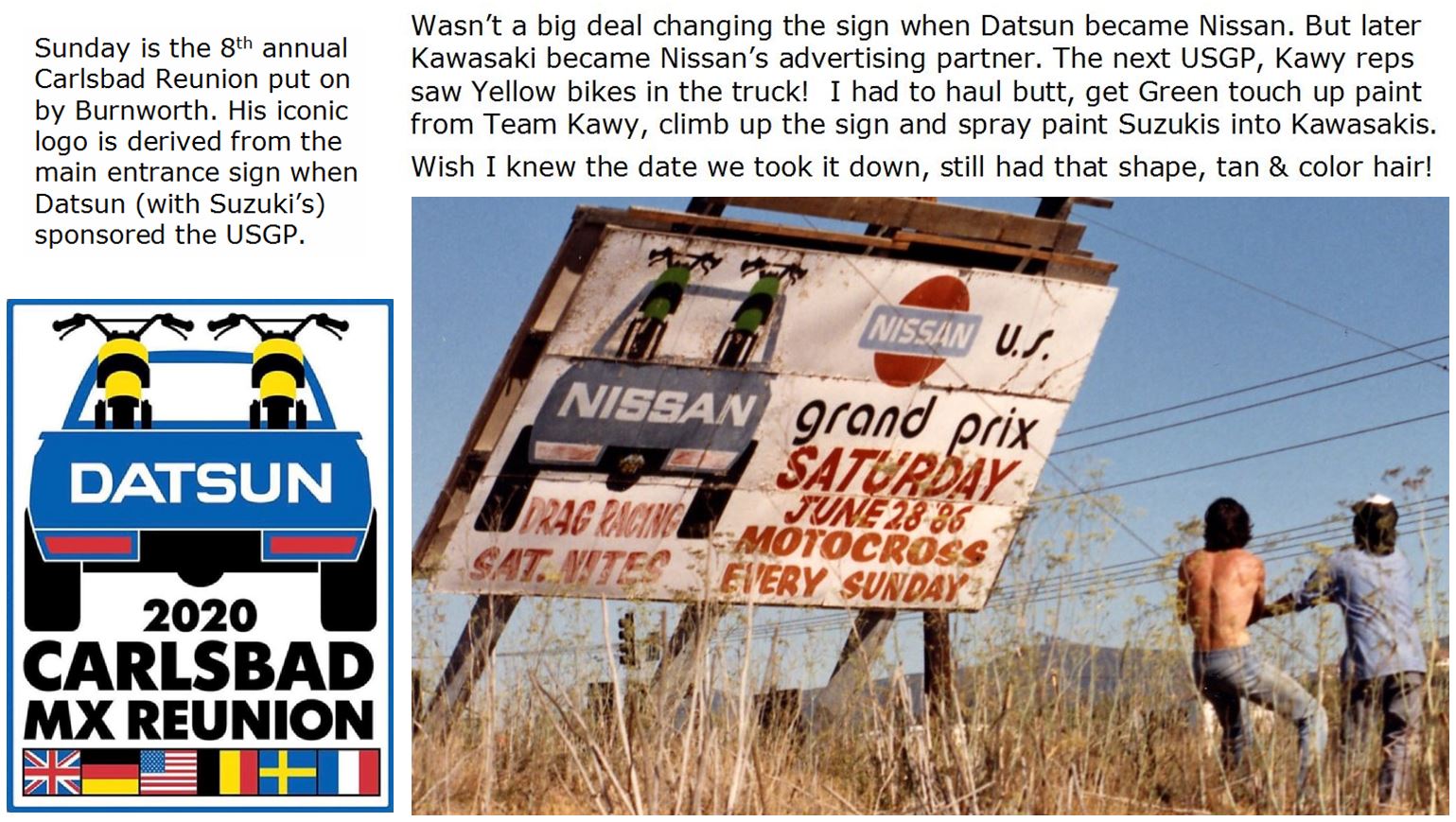 Back before Carlsbad Raceway put the City of Carlsbad on the map, we called the big MX race San Diego International Motocross. ABC Wide World of Sports, the “Hang Ten” (later, USGP) and you racers & spectators changed that. It was a great 40 years of racing. PS: Notice the box in the lower right. Well, you all supported the race and did make it an annual event… abundantly beyond all we hoped or imagined in 1968. Thanks again. |