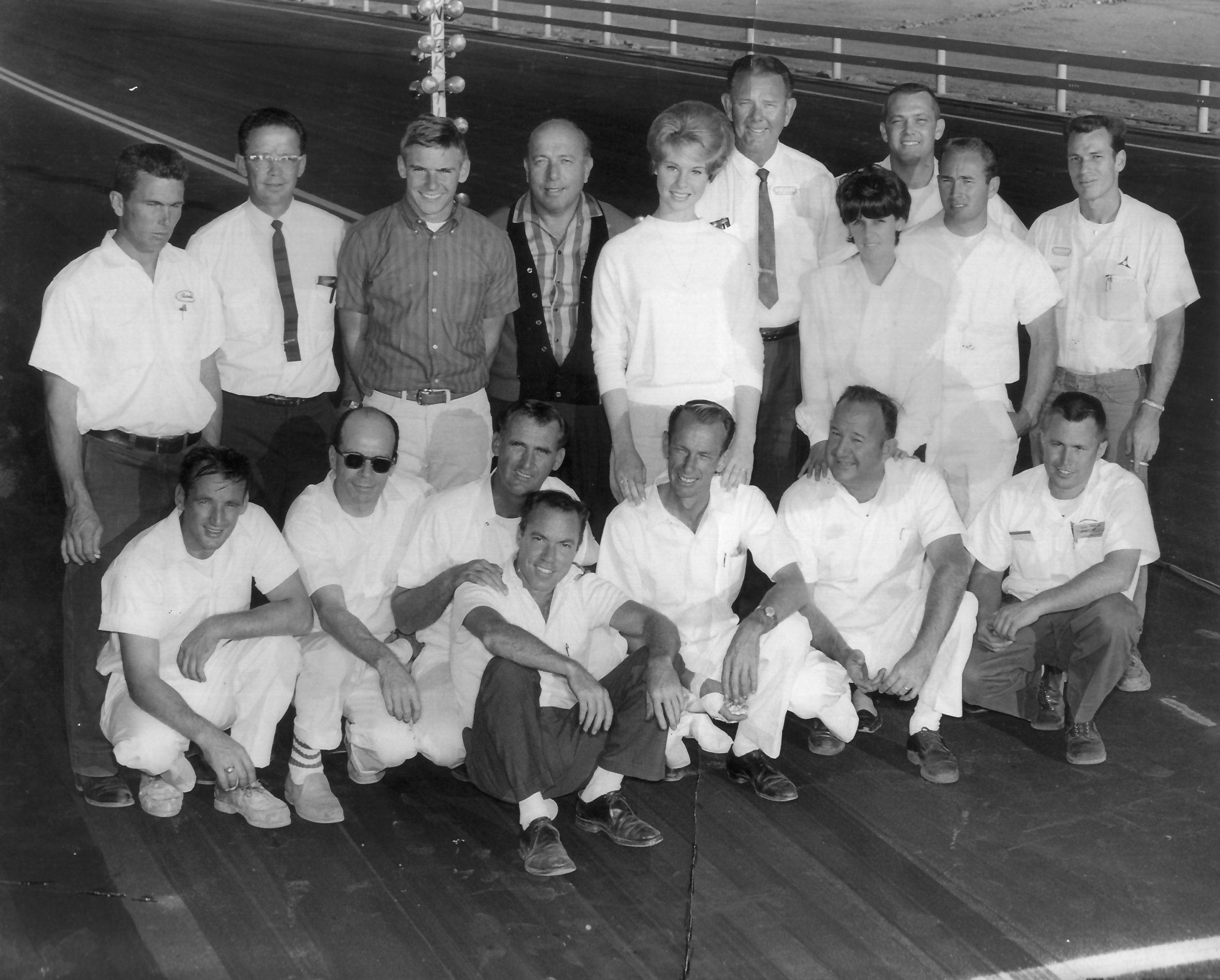 Carlsbad Raceway 1964. Note the left wing and one propeller blade of dad’s Cessna 180 shown in the bottom right corner. For many years he commuted daily from Orange County Airport (now John Wayne Int’l) to the dragstrip, landing under the SDG&E power lines that cross over the shutdown.