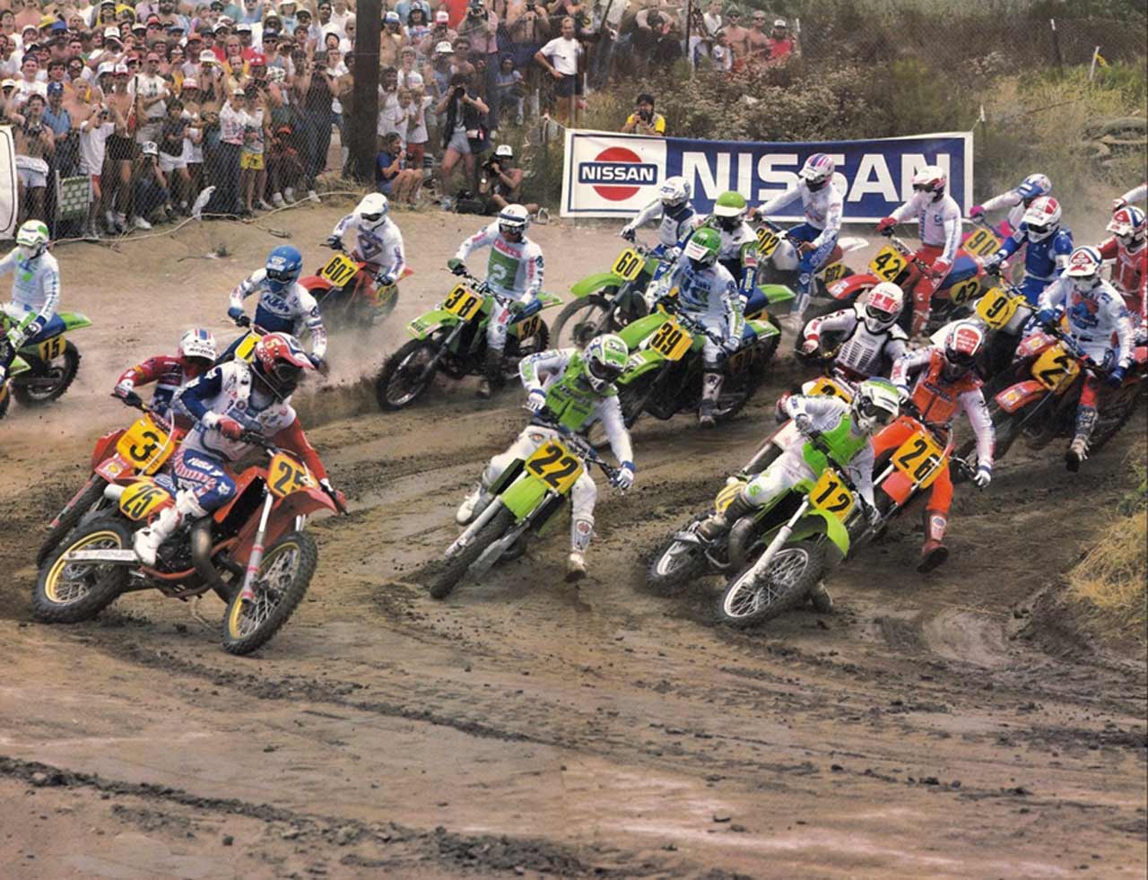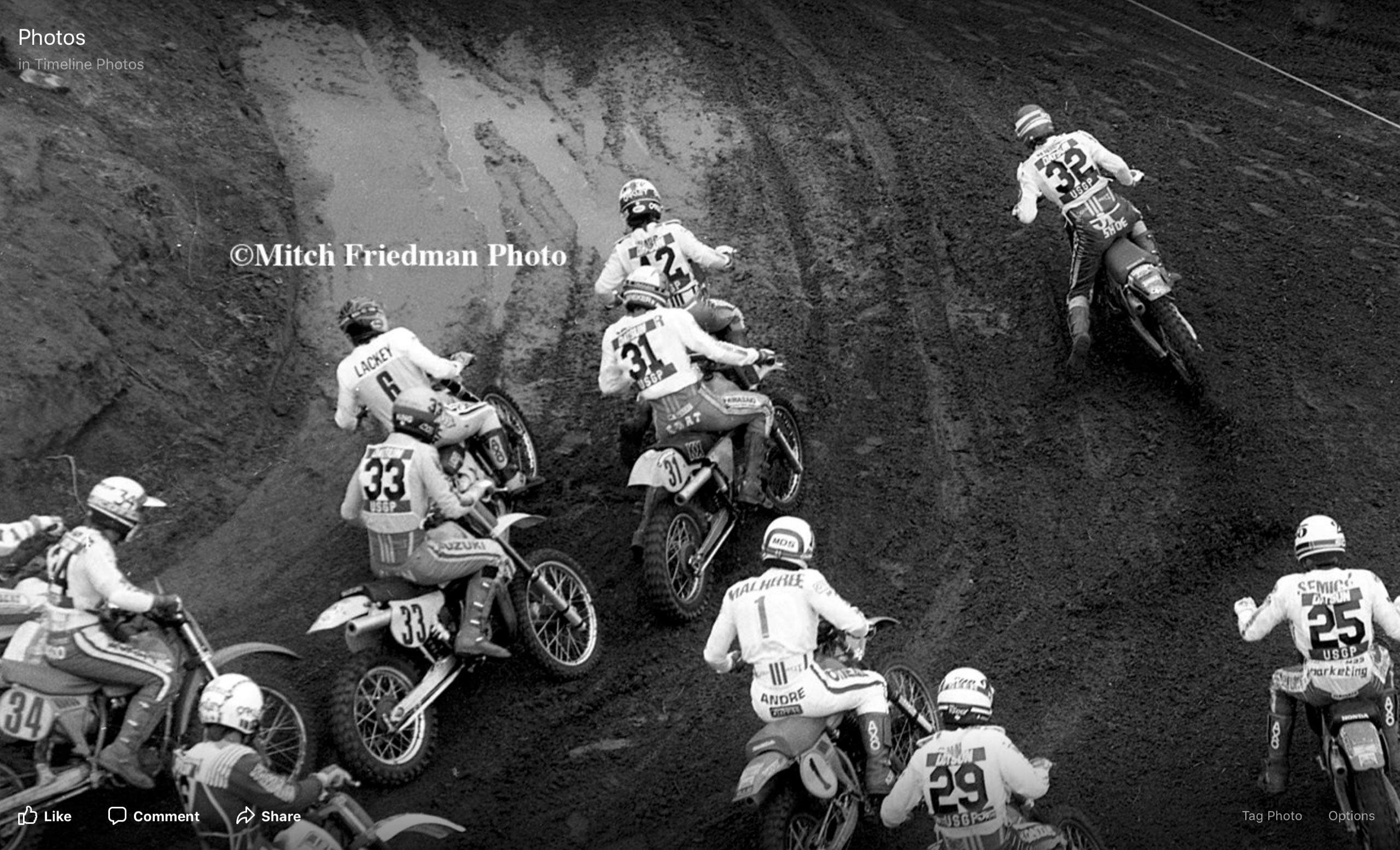 John Taylor forwarded us this Mitch Friedman photo of the 1st moto 1982 USGP start. In 17 years of the USGP, I don’t remember any of the World Champs/contenders ever whining over mud in the 1st moto or dust in the 2nd moto. They just raced. Great group of guys. ↓ |